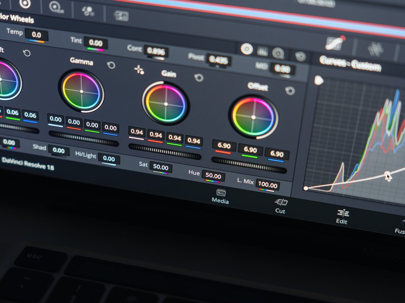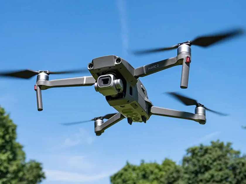 A person operates a professional video camera mounted on a stabilizer, standing in an outdoor setting with blurred greenery in the background. The person is wearing a white t-shirt and a harness, focused on filming.